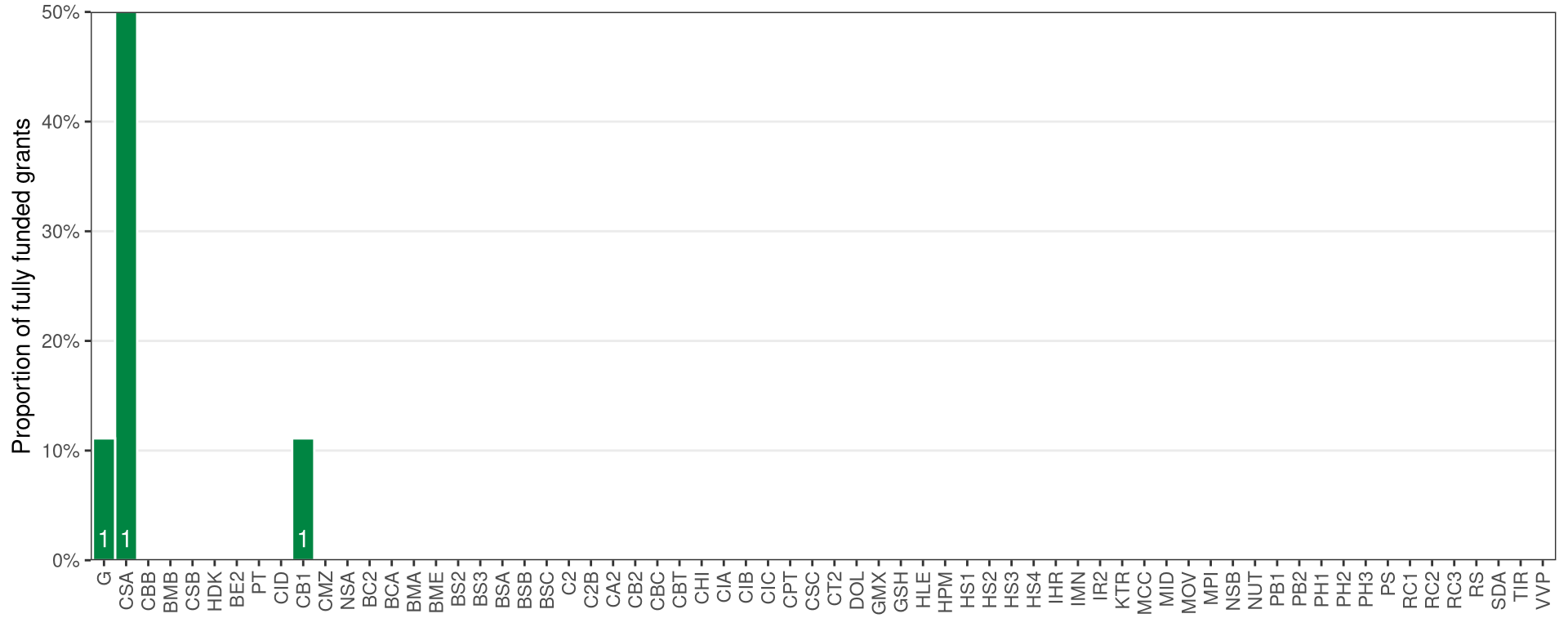 | PRC | Proportion of fully funded grants awarded to past Foundation grant holders (%) | Number of fully funded past Foundation grant holders |