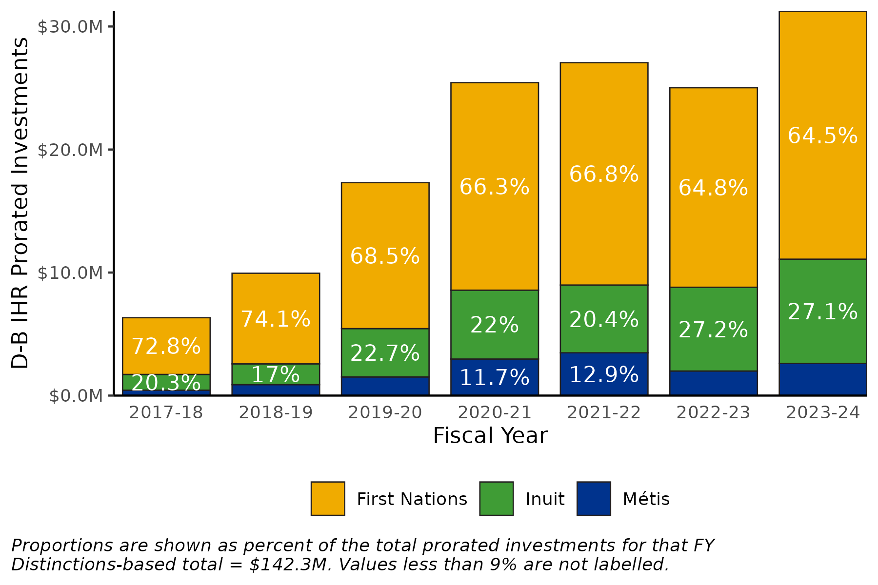 | Distinctions-Based Group | Departmental Results Framework Category | Distinctions-Based IHR Prorated Investments (in millions) | Percentage of Distinctions-Based IHR Prorated Investments |