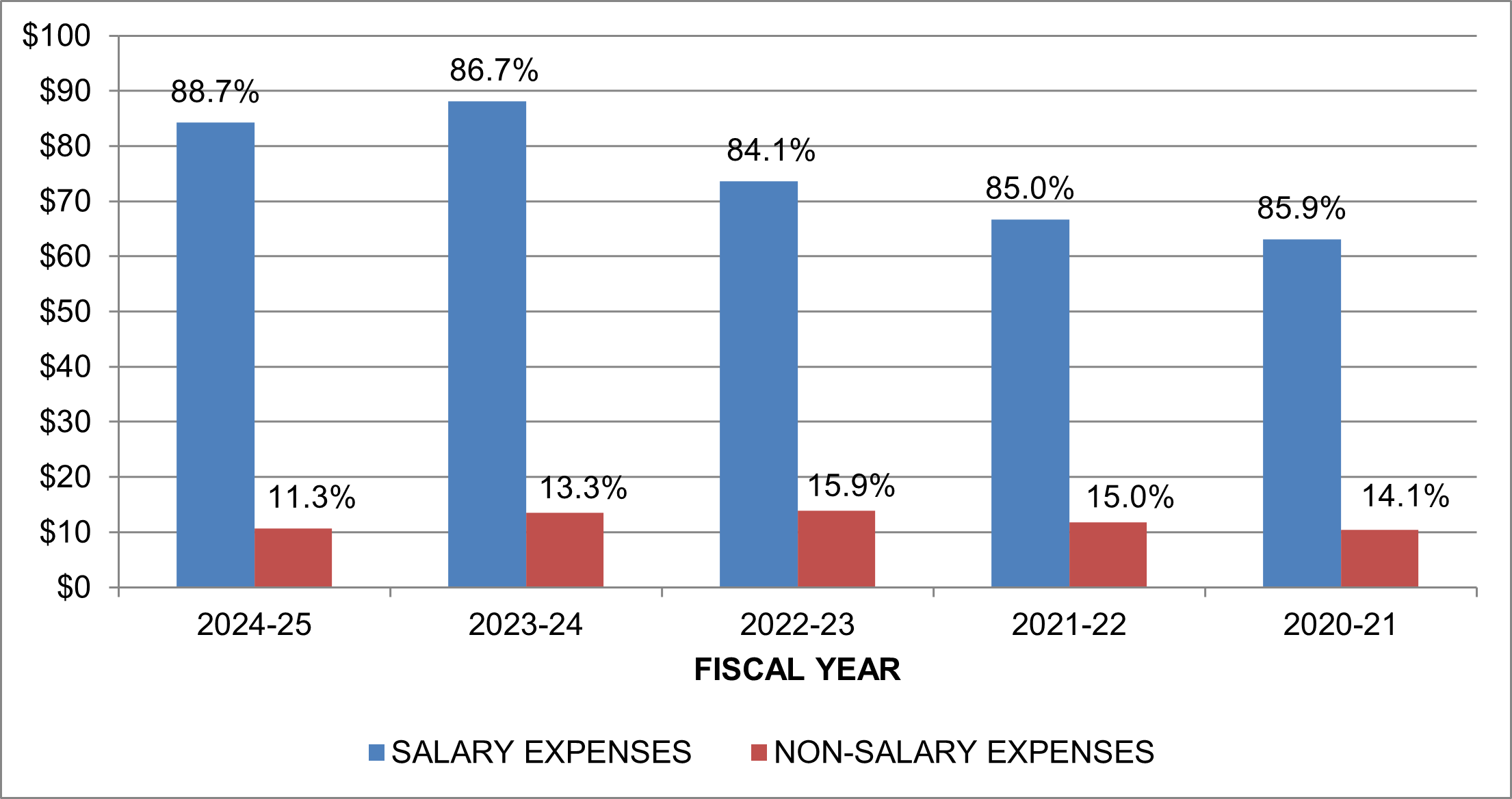 The 2024-25 employer contributions amount to $6,347 ($6,029 in 2023-24). For Group 1 members, the expense represents approximately 1.02 times (1.02 times in 2023-24) the employee contributions and, for Group 2 members, approximately 1.00 times (1.00 times in 2023-24) the employee contributions.