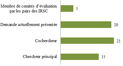Pour corroborer les constatations, nous nous sommes servis de cinq méthodes de collecte de données : analyse bibliométrique; sondages et entrevues auprès de chercheurs, d'étudiants postdoctoraux et de membres de la communauté; analyse des réseaux; examen de la documentation.