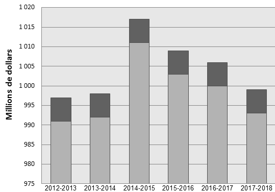 Dépenses budgétaires : Les dépenses budgétaires comprennent les dépenses de fonctionnement et en capital; les paiements de transfert à d’autres ordres de gouvernement, à des organisations ou à des particuliers; et les paiements à des sociétés d’État.