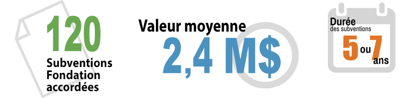 Le concours de subventions Fondation se soldera par le financement de 120 programmes de recherche, pour un investissement total de 292 M$Note en bas de page 1 sur sept ans.