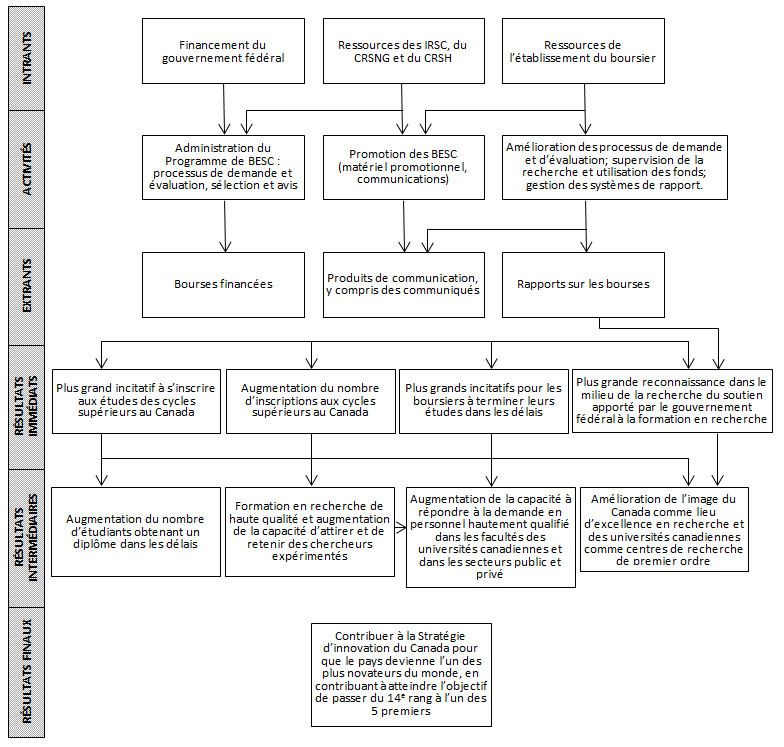 Le Programme de BESC a été lancé par le gouvernement fédéral en 2003 avec pour principal objectif d’apporter une relève fiable et hautement qualifiée pour répondre aux besoins de l’économie canadienne du savoir. Il permet de financer les Canadiens et les résidents permanents qui poursuivent des études de maitrise ou de doctorat dans une université canadienne. Les résultats attendus sont les suivants :
