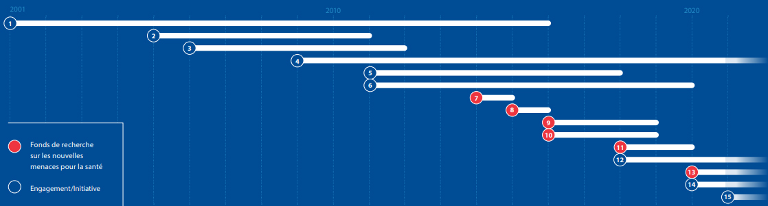 Les IRSC se sont engagés à tirer parti du savoir faire scientifique du Canada et de leur propre expérience en financement de la recherche pour jouer un rôle significatif dans les efforts des organisations multilatérales qui s’efforcent de régler les problèmes de santé mondiale. La priorité sera accordée aux discussions politiques de l’Organisation mondiale de la Santé (y compris le Centre international de recherche sur le cancer), du G7 et du G20, de même qu’aux questions liées aux trois champs d’impact définis sous l’objectif 1.